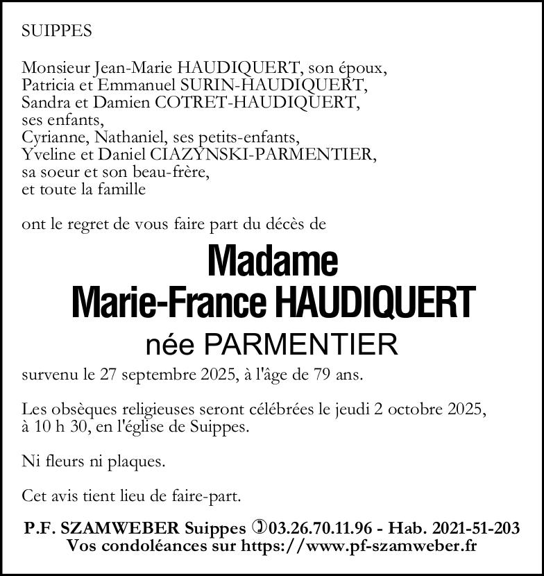 Madame Marie-France HAUDIQUERT née PARMENTIER