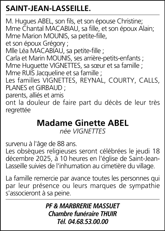 Veuve de Monsieur Guy ABEL