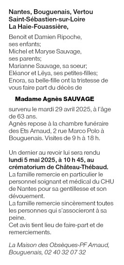 Died in Nantes (44000) on 29 April 2025 at the age of 63 years