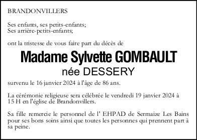 Madame Sylvette GOMBAULT née DESSERY