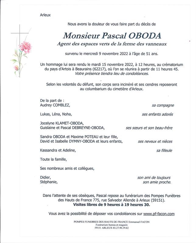 Died in Dechy (59187) on 09 November 2022 at the age of 51 years