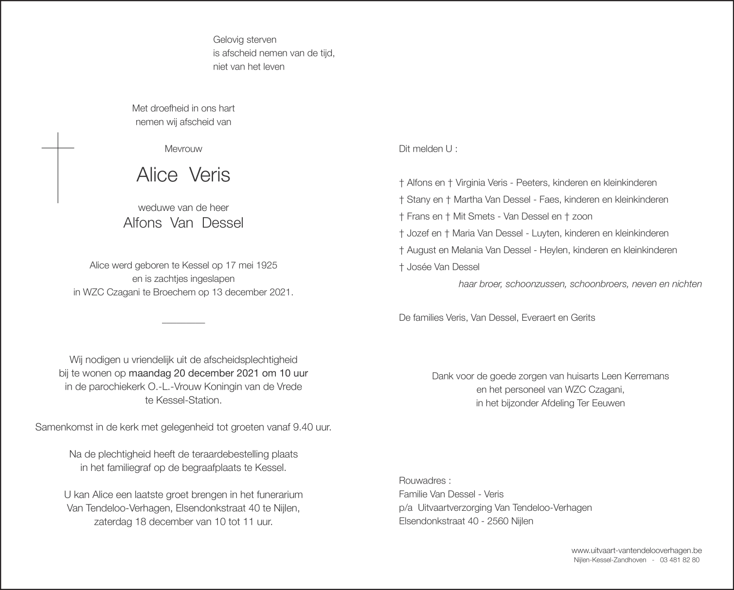 Née à Kessel (2560, Belgique) le dimanche 17 mai 1925