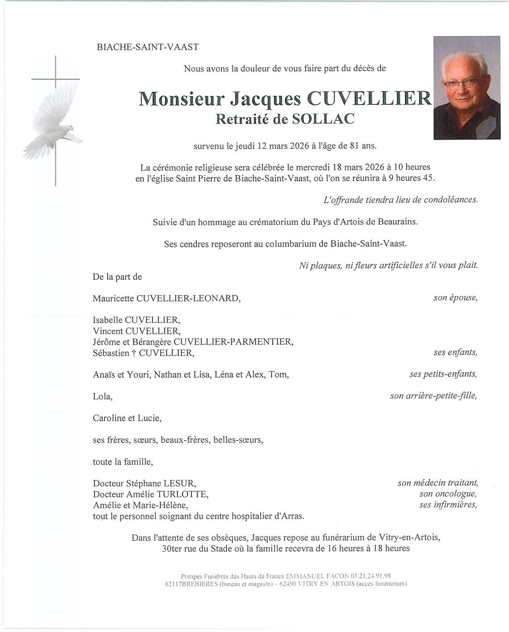 Décédé à Arras (62000) le jeudi 12 mars 2026 à l'âge de 81 ans
