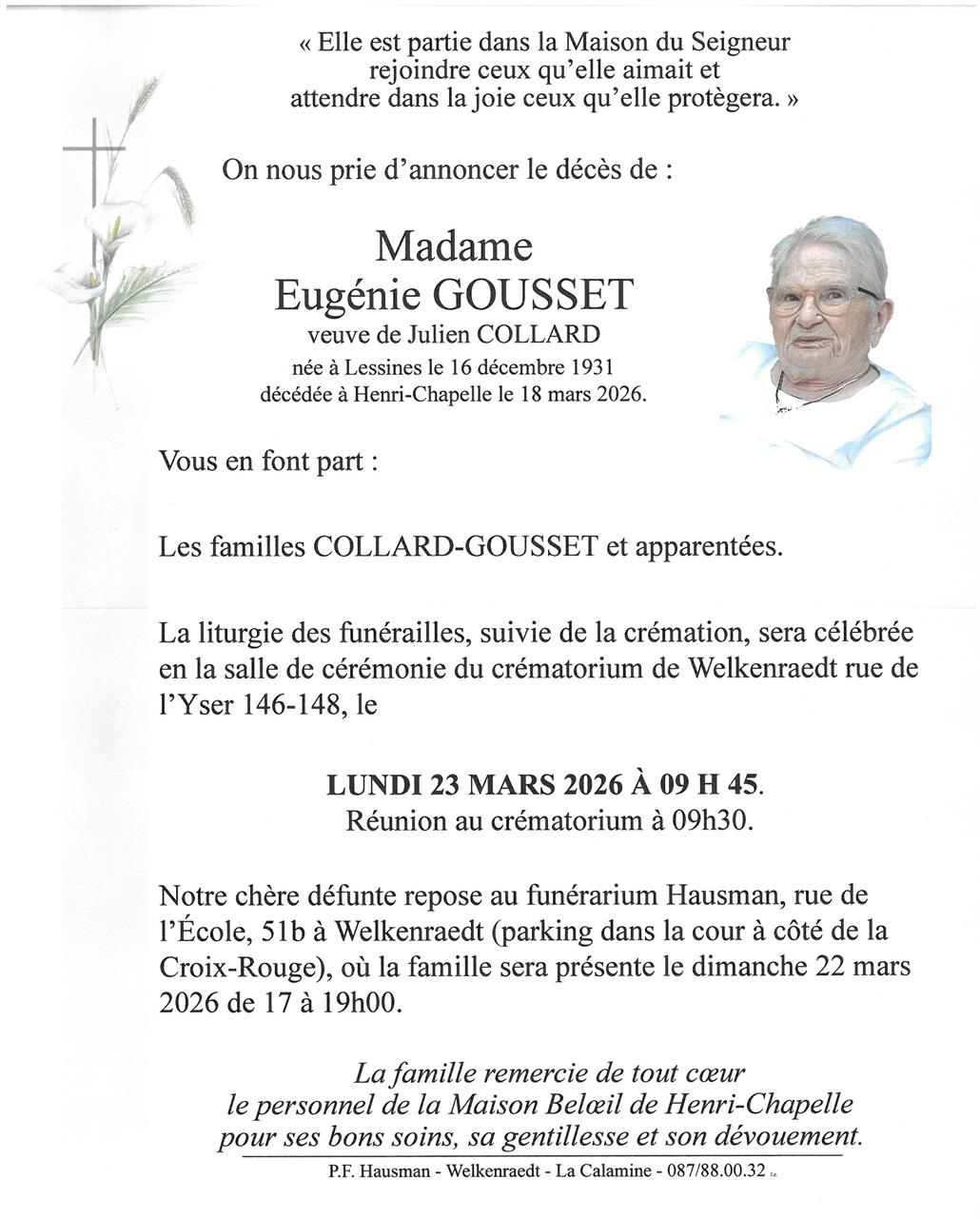 Mevrouw Eugénie GOUSSET