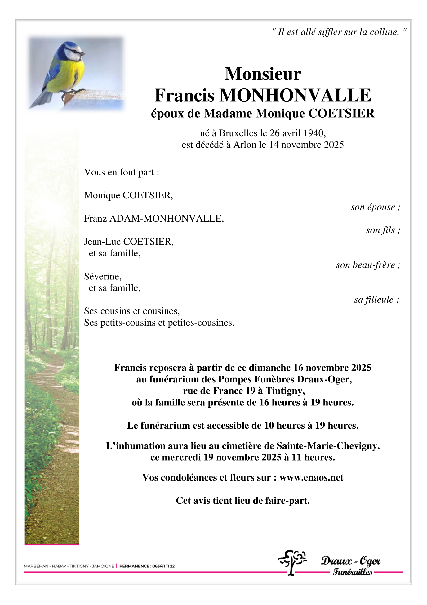 Died in Arlon (6700, Belgium) on 14 November 2025 at the age of 85 years
