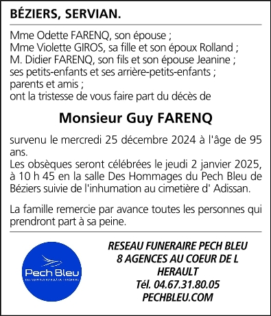 Overleden te Montady (34310) op woensdag 25 december 2024 op 95-jarige leeftijd