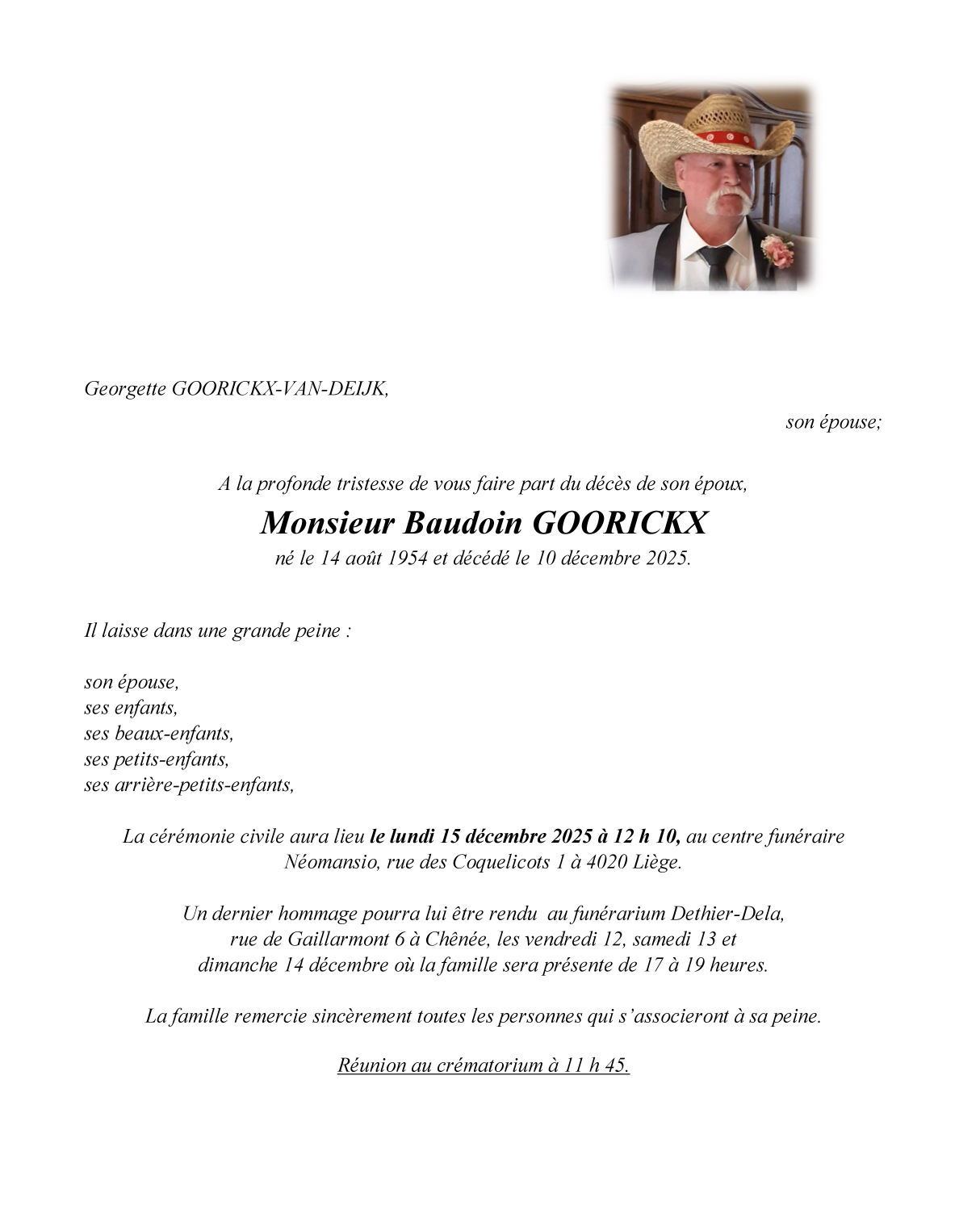 Overleden te Chênée (4032, België) op woensdag 10 december 2025 op 71-jarige leeftijd