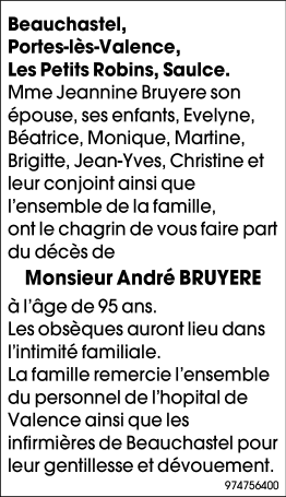 Overleden te Valence (26000) op donderdag 2 april 2020 op 95-jarige leeftijd