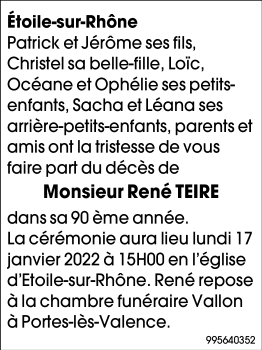 Décédé à Valence (26000) le mercredi 12 janvier 2022 à l'âge de 89 ans