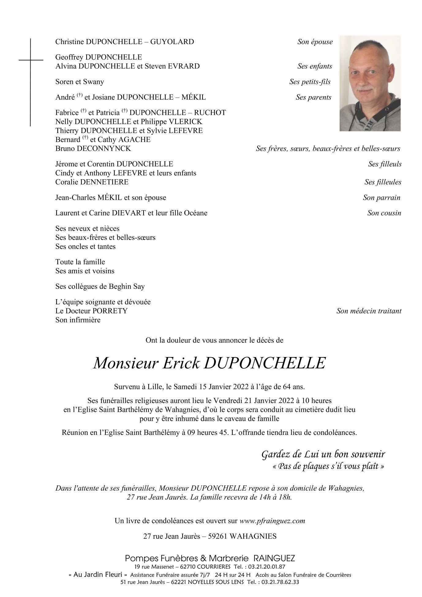 Décédé à Lille (59000) le samedi 15 janvier 2022 à l'âge de 64 ans
