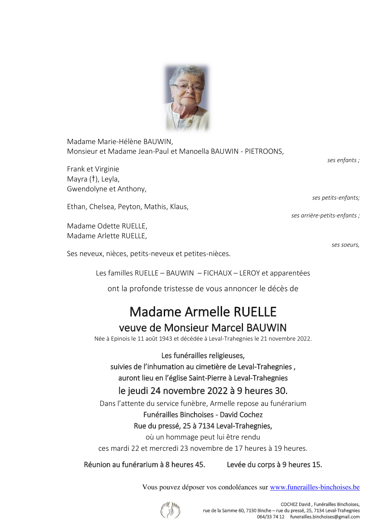 Veuve de Monsieur Marcel BAUWIN