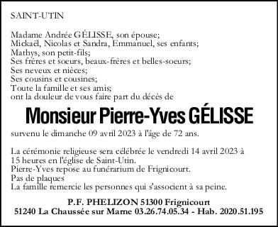 Décédé à Saint-Utin (51290) le dimanche 9 avril 2023 à l'âge de 72 ans
