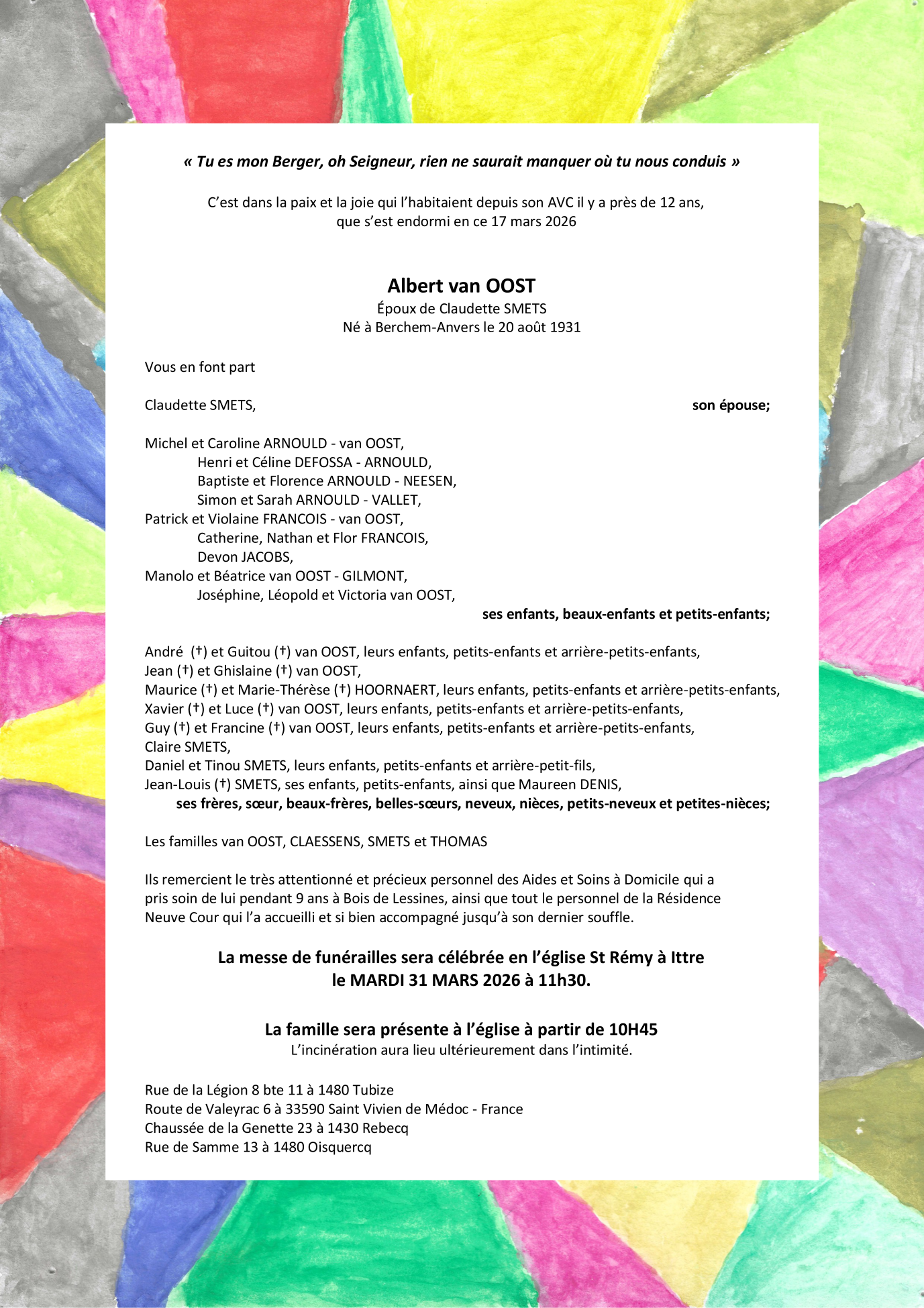 Overleden te Tubize (1480, België) op dinsdag 17 maart 2026 op 94-jarige leeftijd
