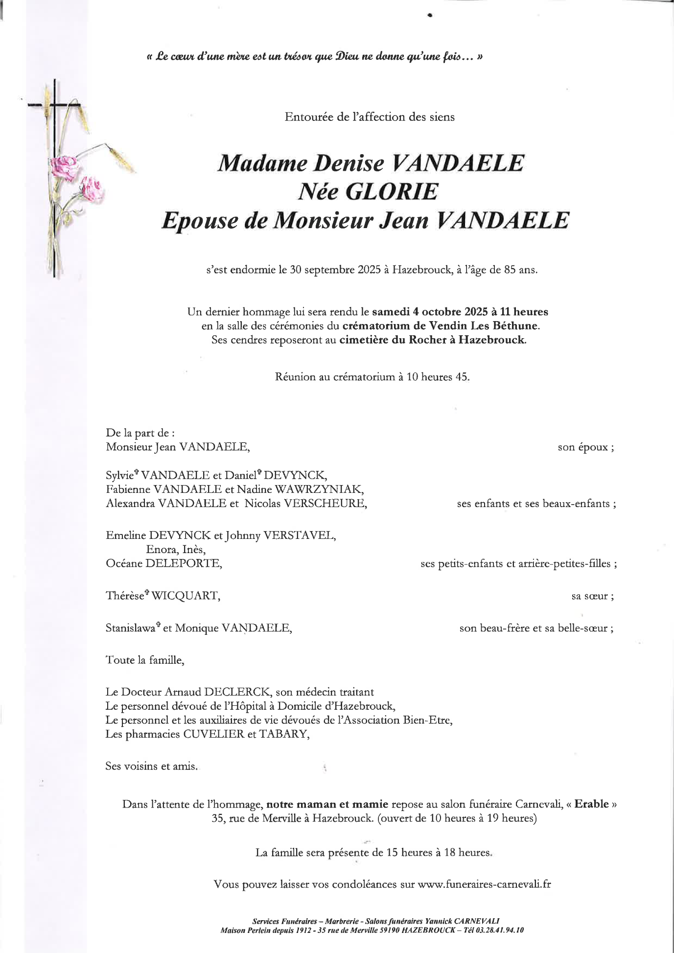 Esposa de Monsieur Jean VANDAELE