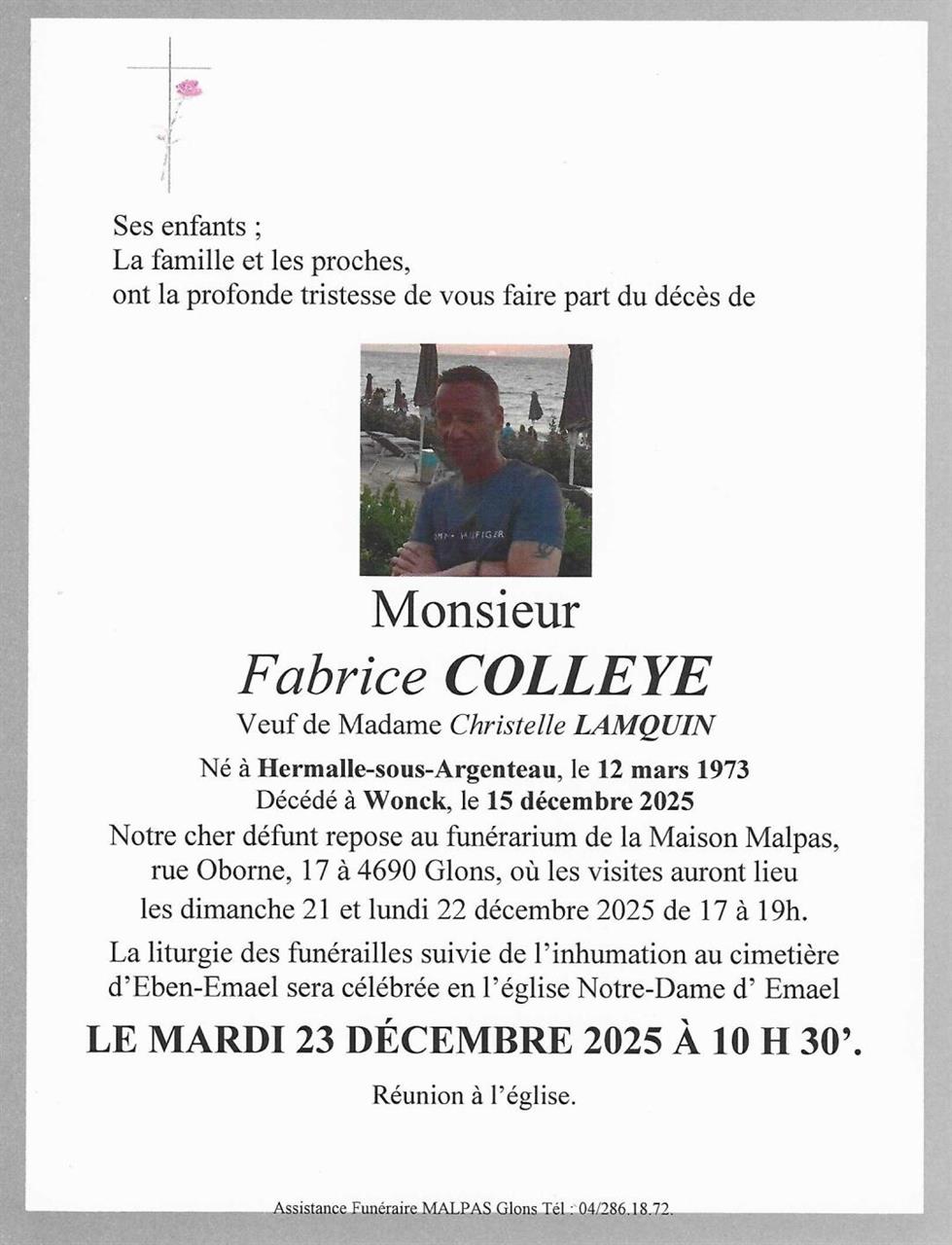 Décédé à Wonck (4690, Belgique) le lundi 15 décembre 2025 à l'âge de 52 ans