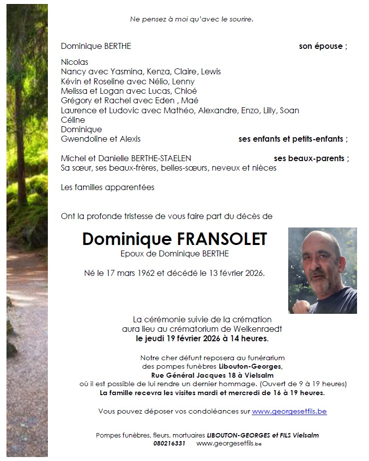 Décédé à Lierneux (4990, Belgique) le vendredi 13 février 2026 à l'âge de 63 ans