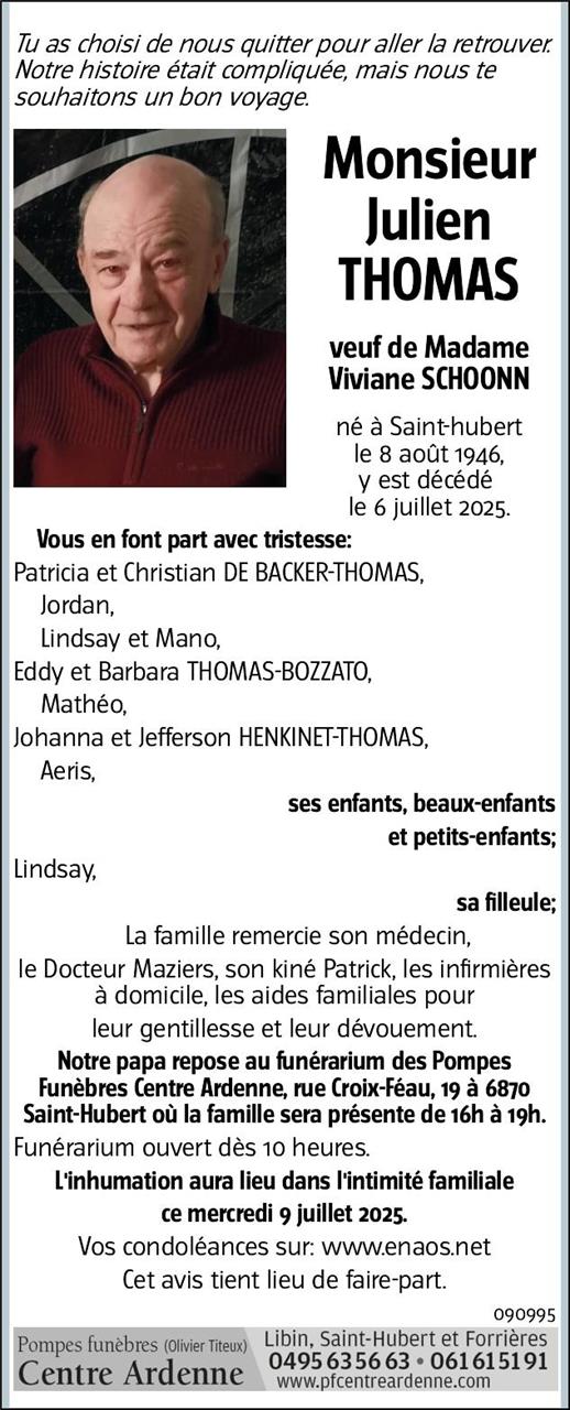 Décédé à Saint-Hubert (6870, Belgique) le dimanche 6 juillet 2025 à l'âge de 78 ans