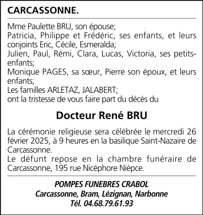 Décédé à Carcassonne (11000) le samedi 22 février 2025 à l'âge de 86 ans