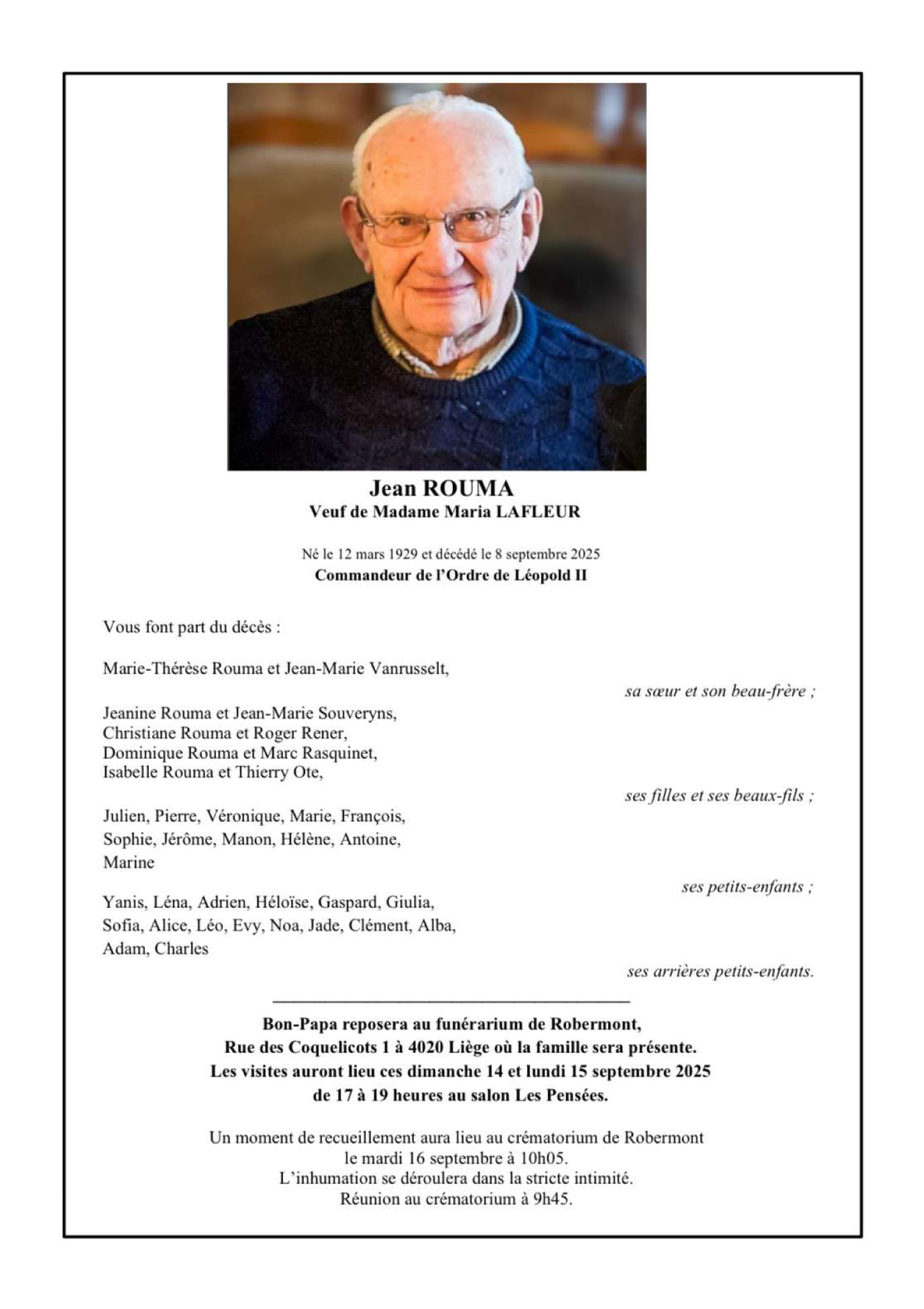 Fallecido en Sprimont (4140, Bélgica) el lunes, 8 de septiembre de 2025 a la edad de 96 años