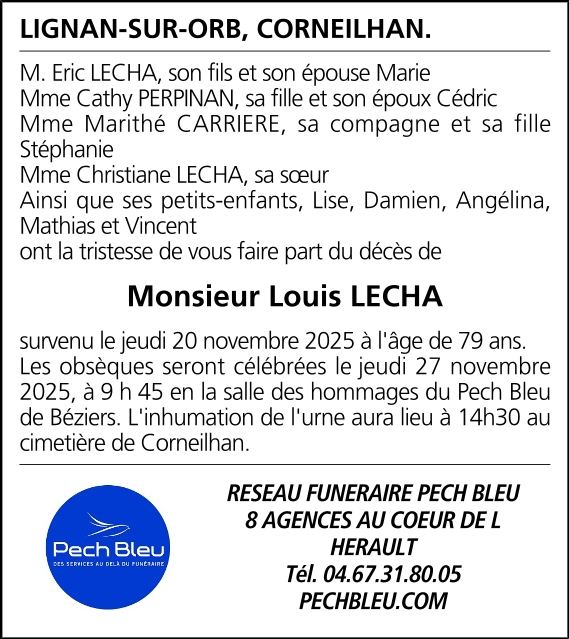 Died in Lignan-sur-Orb (34490) on 20 November 2025 at the age of 79 years