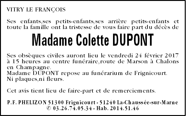 Fallecida en Reims (51100) el lunes, 20 de febrero de 2017 a la edad de 87 años
