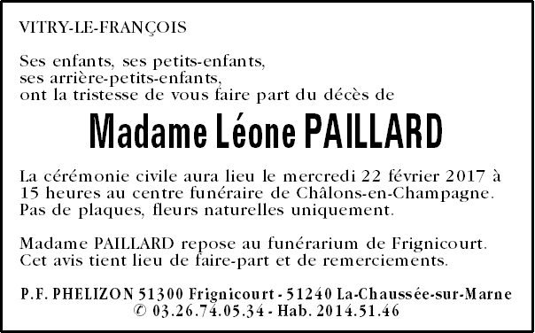 Madame Léone PAILLARD née GILLET