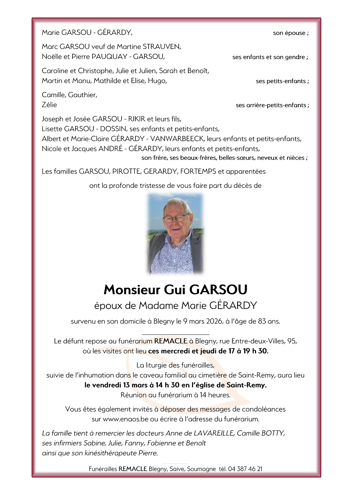 Fallecido en Blegny (4670, Bélgica) el lunes, 9 de marzo de 2026 a la edad de 83 años