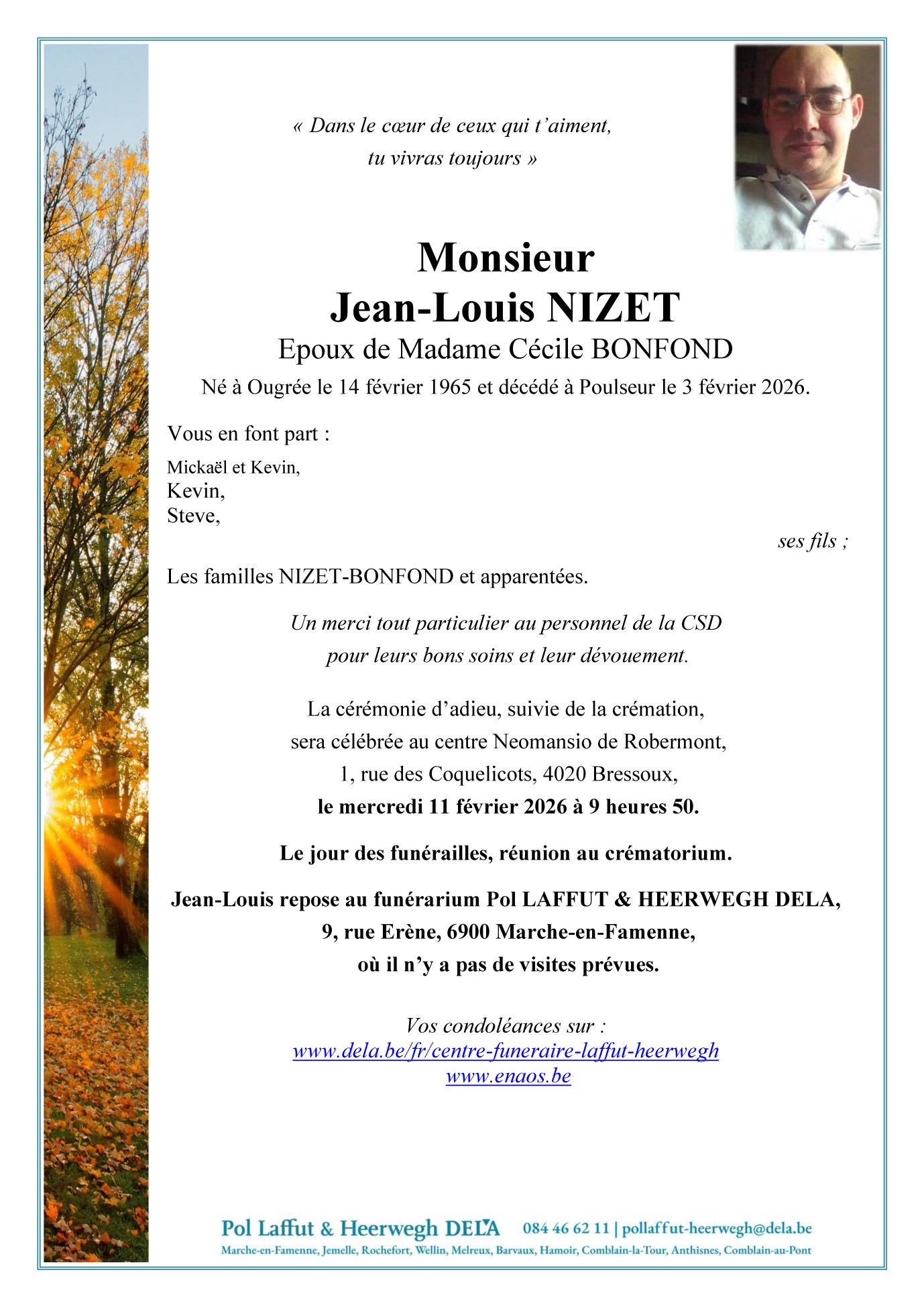 Décédé à Poulseur (4171, Belgique) le mardi 3 février 2026 à l'âge de 60 ans