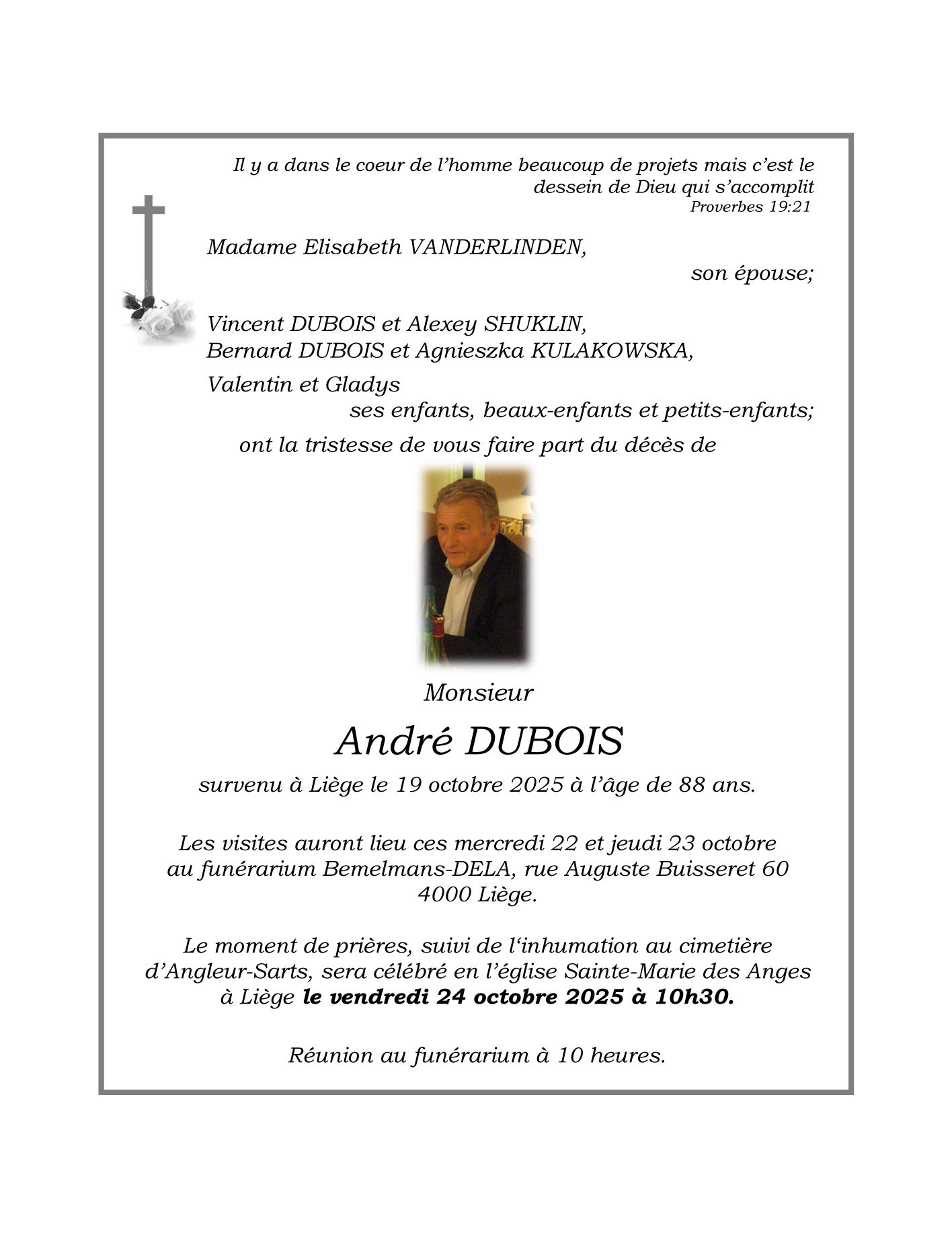 Overleden te Liège (4000, België) op zondag 19 oktober 2025 op 88-jarige leeftijd