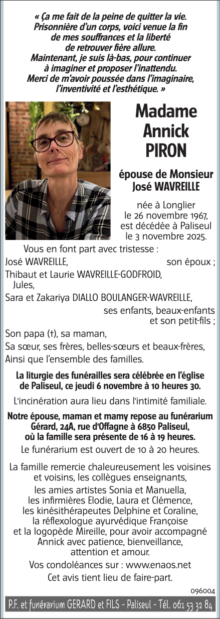 Died in Paliseul (6850, Belgium) on 03 November 2025 at the age of 57 years