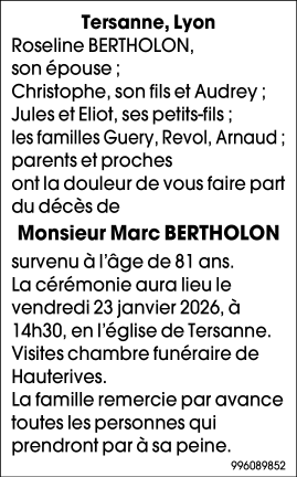 Décédé à Caluire-et-Cuire (69300) le lundi 19 janvier 2026 à l'âge de 80 ans