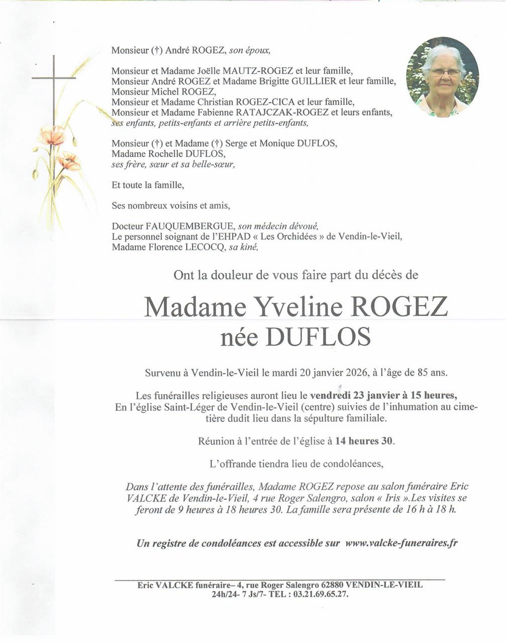 Madame Yveline ROGEZ geboren DUFLOS