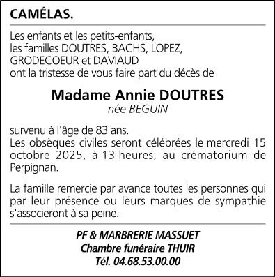 Overleden te Camelas (66300) op zondag 12 oktober 2025 op 83-jarige leeftijd