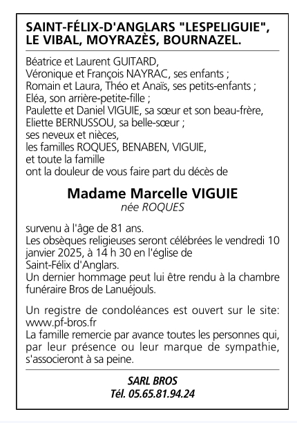 Died in Rignac (12390) on 07 January 2025 at the age of 81 years