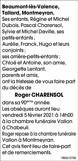Décédé à Valence (26000) le mardi 2 février 2021 à l'âge de 89 ans