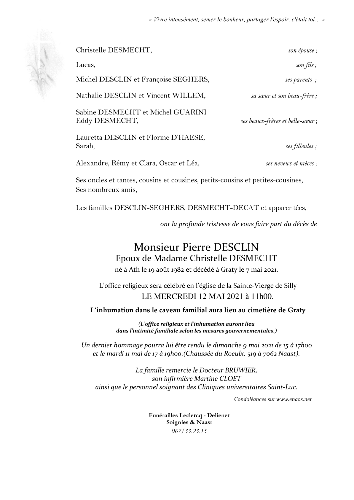 Fallecido en Graty (7830, Bélgica) el viernes, 7 de mayo de 2021 a la edad de 38 años