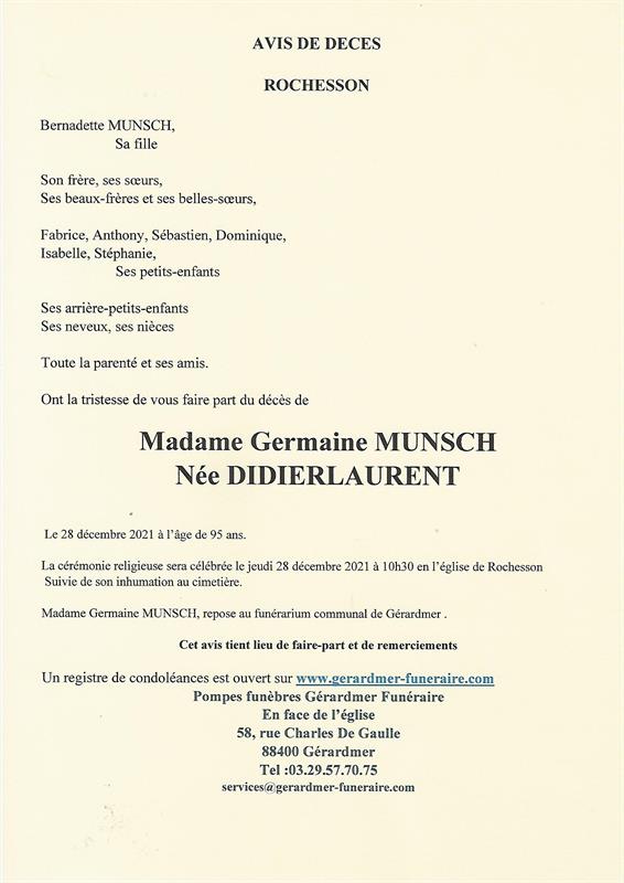 Madame Germaine Marie Angèle MUNSCH née DIDIERLAURENT