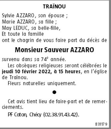 Décédé à Orléans (45000) le vendredi 4 février 2022 à l'âge de 73 ans
