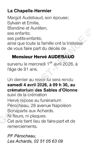 Overleden te Nantes (44000) op woensdag 1 april 2026 op 81-jarige leeftijd