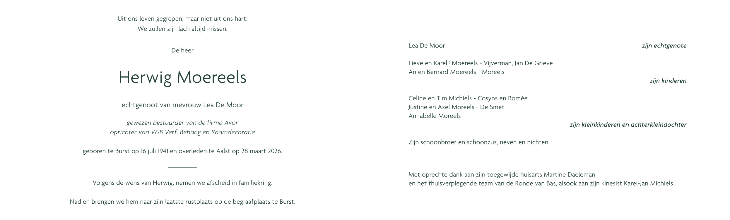 Overleden te Aalst (9300, België) op zaterdag 28 maart 2026 op 84-jarige leeftijd