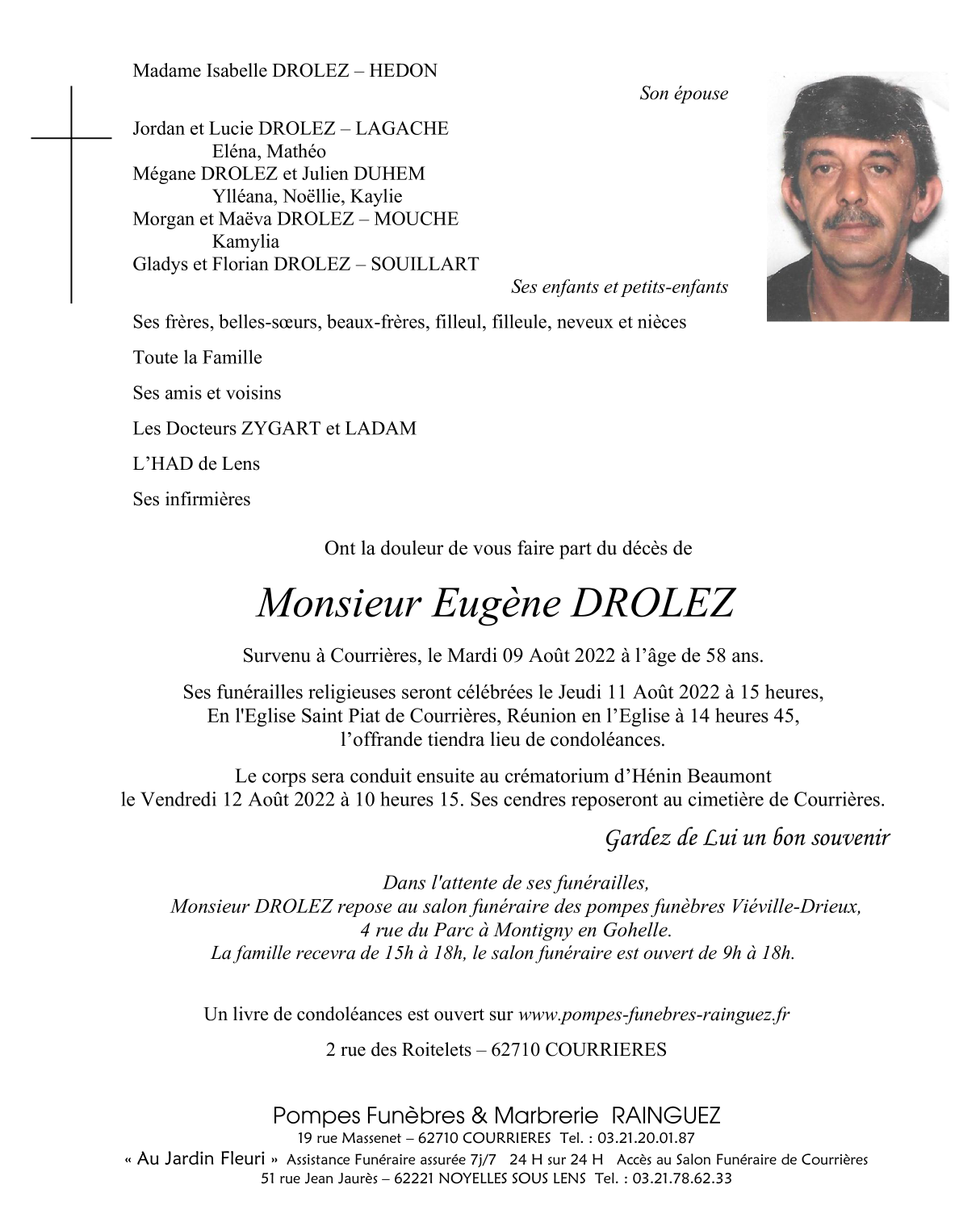 Décédé à Courrières (62710) le mardi 9 août 2022 à l'âge de 58 ans