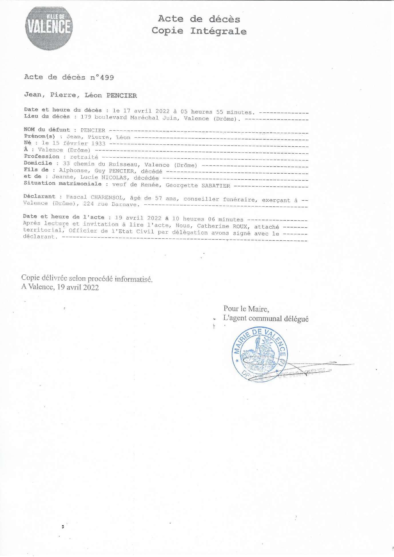 Décédé à Valence (26000) le dimanche 17 avril 2022 à l'âge de 89 ans
