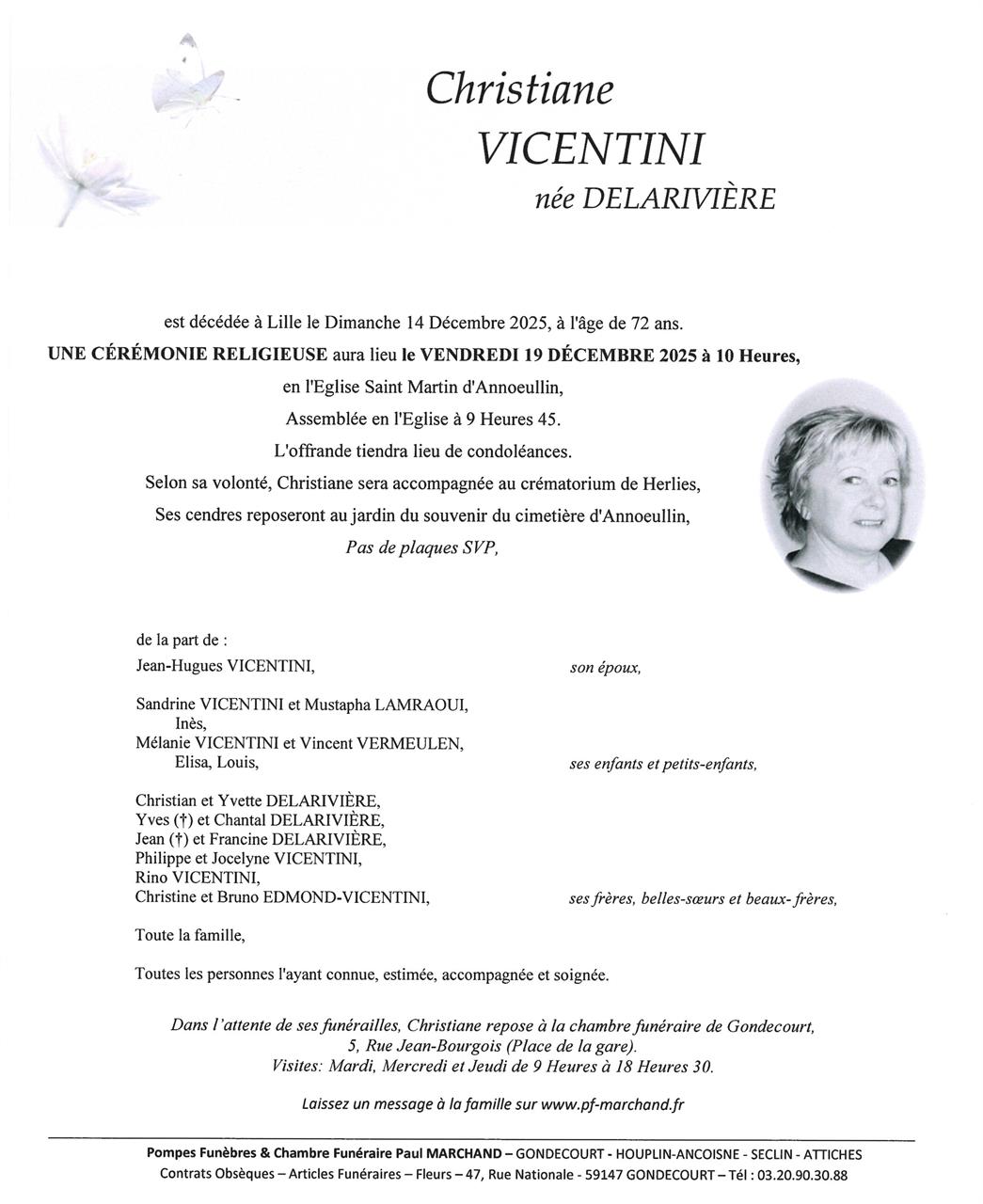 Madame Christiane VICENTINI geboren DELARIVIÈRE