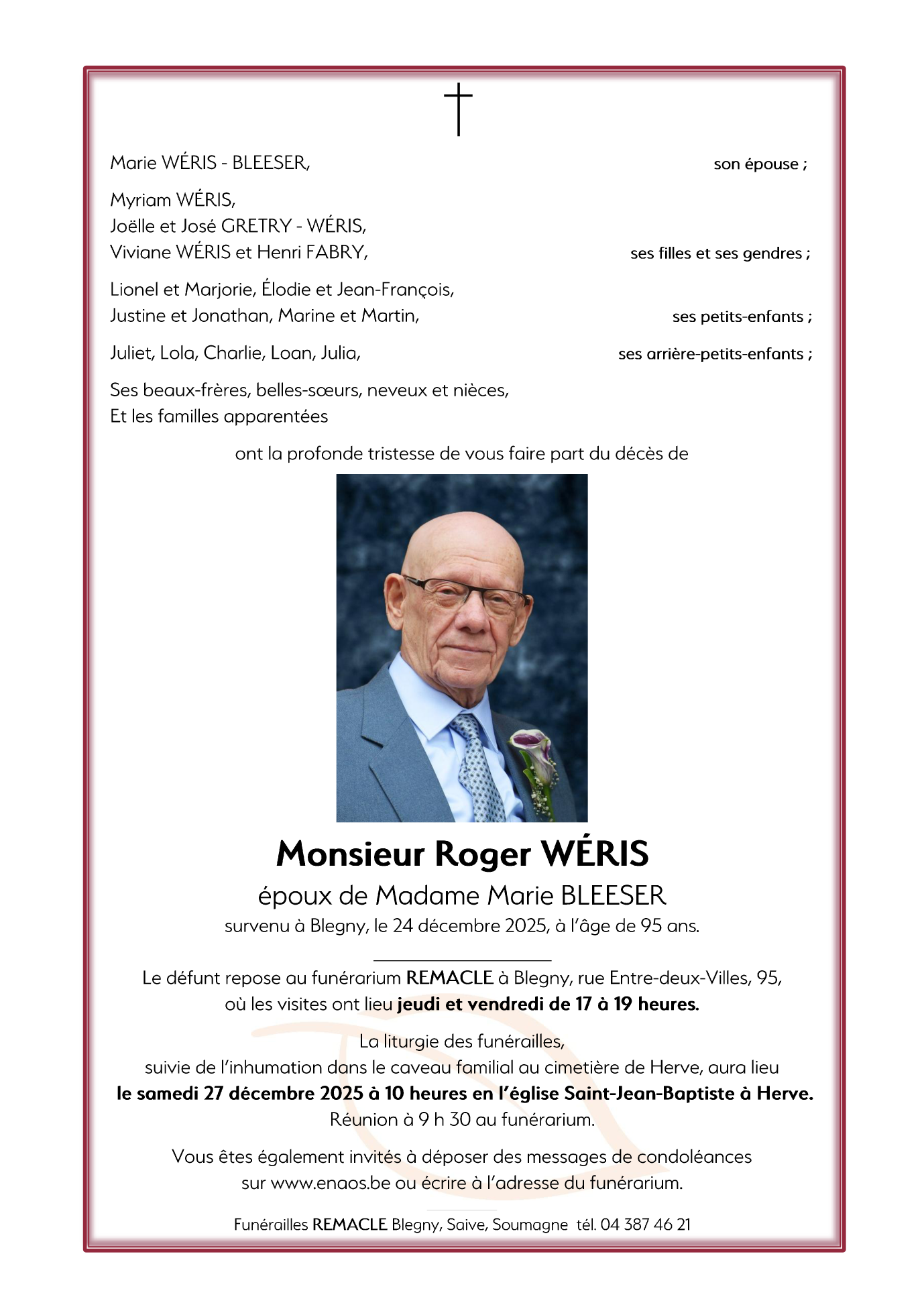 Fallecido en Blegny (4670, Bélgica) el miércoles, 24 de diciembre de 2025 a la edad de 95 años