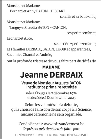 Madame Jeanne DERBAIX