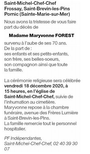 Décédée à Saint-Nazaire (44600) le mardi 15 décembre 2020 à l'âge de 69 ans