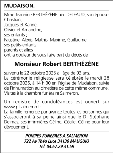 Epoux de Madame Jeannine BERTHÉZÈNE