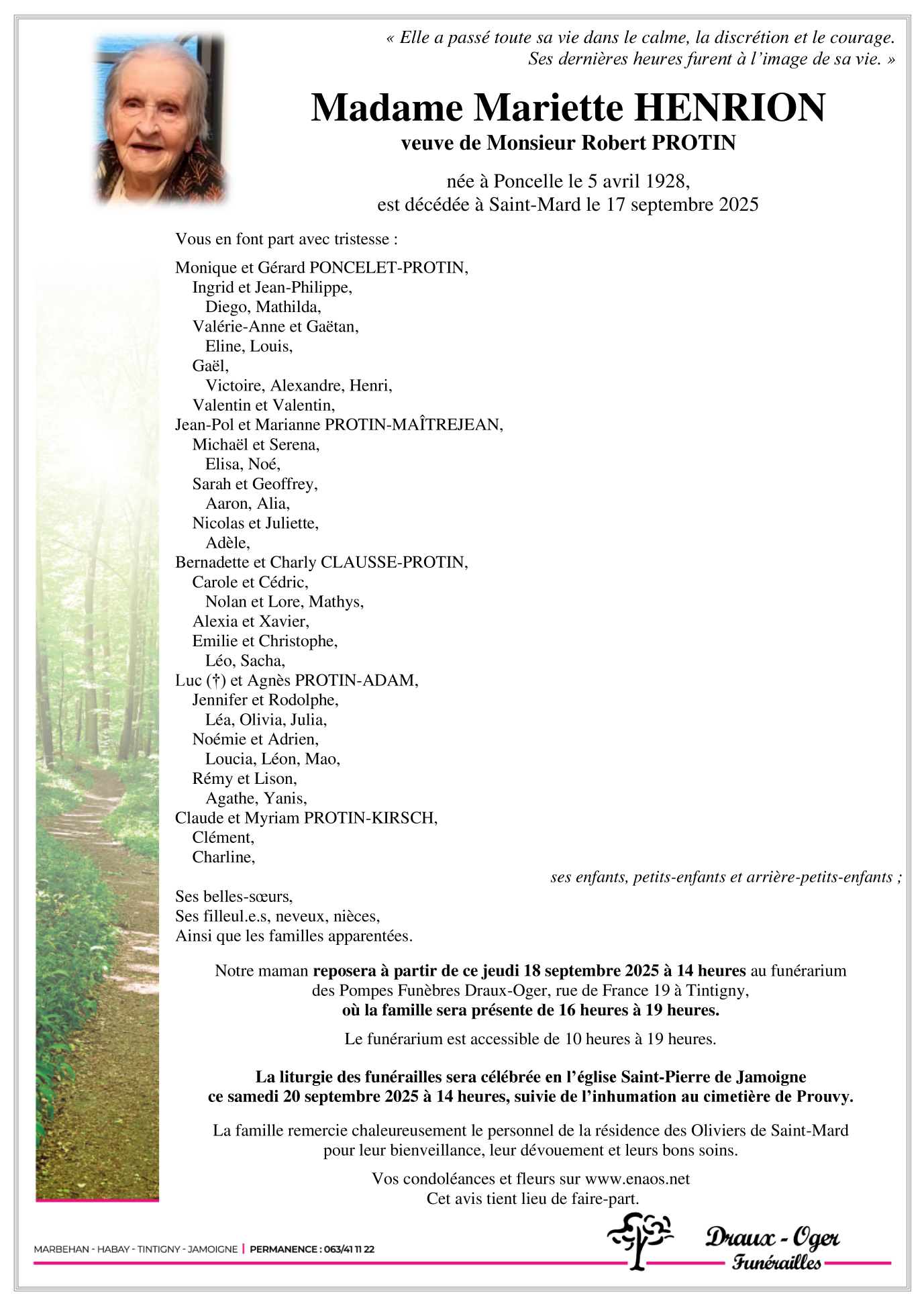 Veuve de Monsieur Robert PROTIN