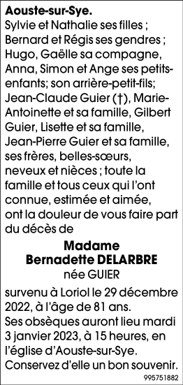Died in Loriol-sur-Drôme (26270) on 29 December 2022 at the age of 81 years