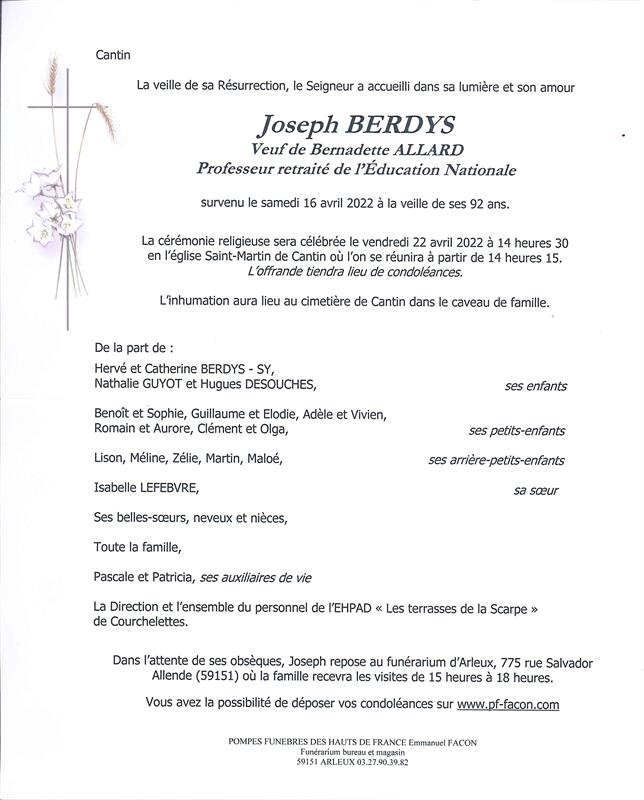 Décédé à Courchelettes (59552) le samedi 16 avril 2022 à l'âge de 91 ans